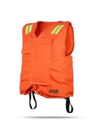 Desenvolvido para trabalhos com solda ou risco de fogo realizados próximos à borda de embarcações, cais ou construções que apresentem risco de queda na água. Abertura nas costas para uso simultâneo de cinto trava-quedas.